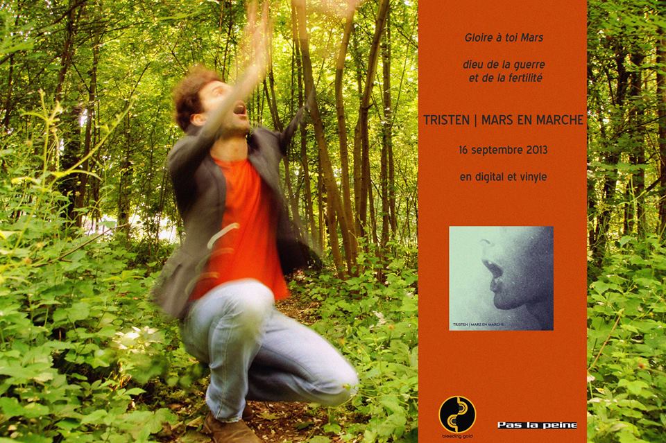 Guitarist, bassist, drummer, jack-of-all-trades, TRISTEN uses the entire arsenal of the musician handyman to make an album with subtle carnal tones. His bold and adventurous personal arrangements are married together but assume different influences. Mars en Marche is the famous meeting of Stereolab and Abba, of Mathieu Boogaerts and Arcade Fire, of Albin De La Simone and Karkwa. As he says himself, “J’aime beaucoup Tortoise et Mike Patton, mais bon, faut pas oublier Véronique Sanson non plus”